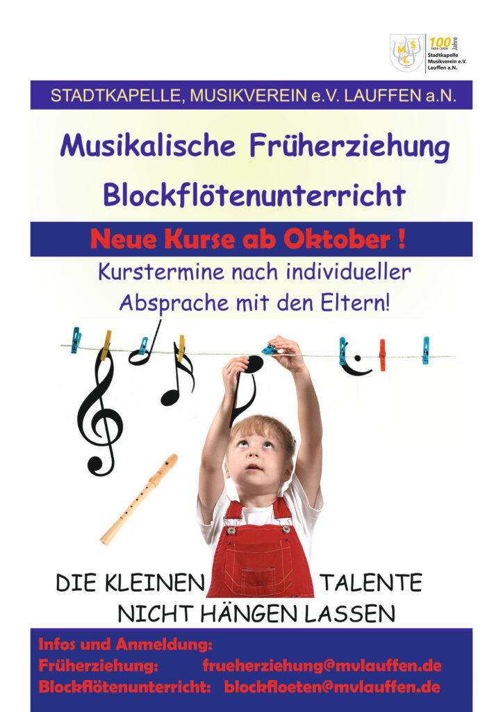 Ebenfalls starten demnächst wieder neue Blockflötenkurse in der Kleingruppe. Weitere Informationen bzw. Anmeldung gerne per E-Mail an: blockfloeten@mvlauffen.de